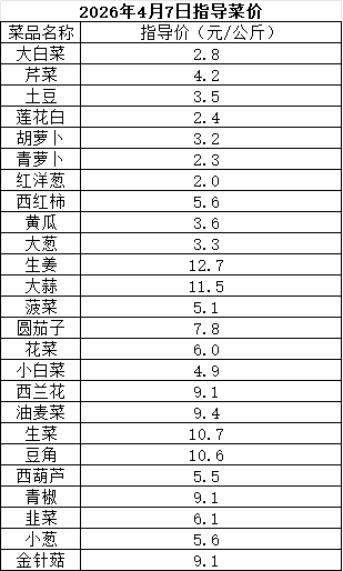 惠民平价!克拉玛依区便民蔬菜价格公示