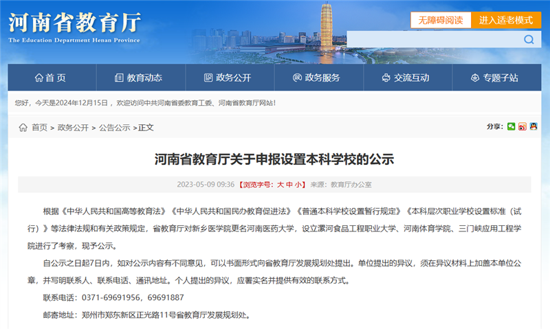 近日,教育部发布《关于同意设置河南信息科技学院的函》。经教育部党组会议研究决定,同意以河南理工大学鹤壁工程技术学院为基础,设立河南信息科技学院。河南信息科技学院为公办普通本科学校,由河南省领导和管理。